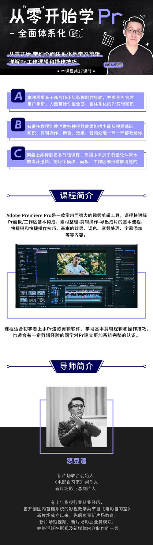 本课程累积于新片场十年影视制作经验,并参考Pr官方用户手册,力图带给你更全面、更体系化的Pr剪辑知识