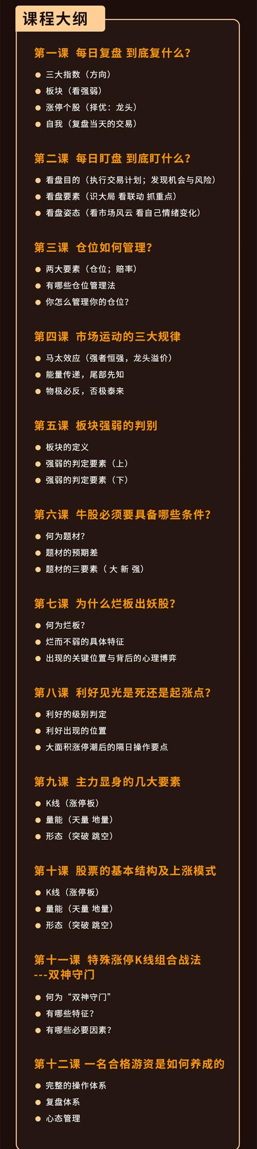 毛毛老师龙头战法复盘课(中级)资源简介: