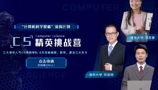 “叶算机科学基础”拔高计划:CS精英挑战营, 三大清华人气CS导师带队8天攻破编程、数学、算法三大关卡。