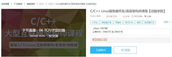 动脑学院:C/C++ Linux服务器开发/高级架构师课程 (腾讯课堂35G) 价值5980元