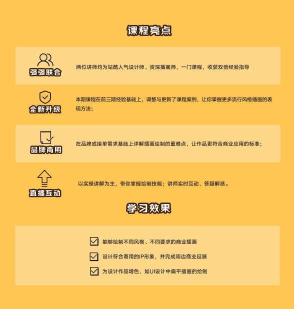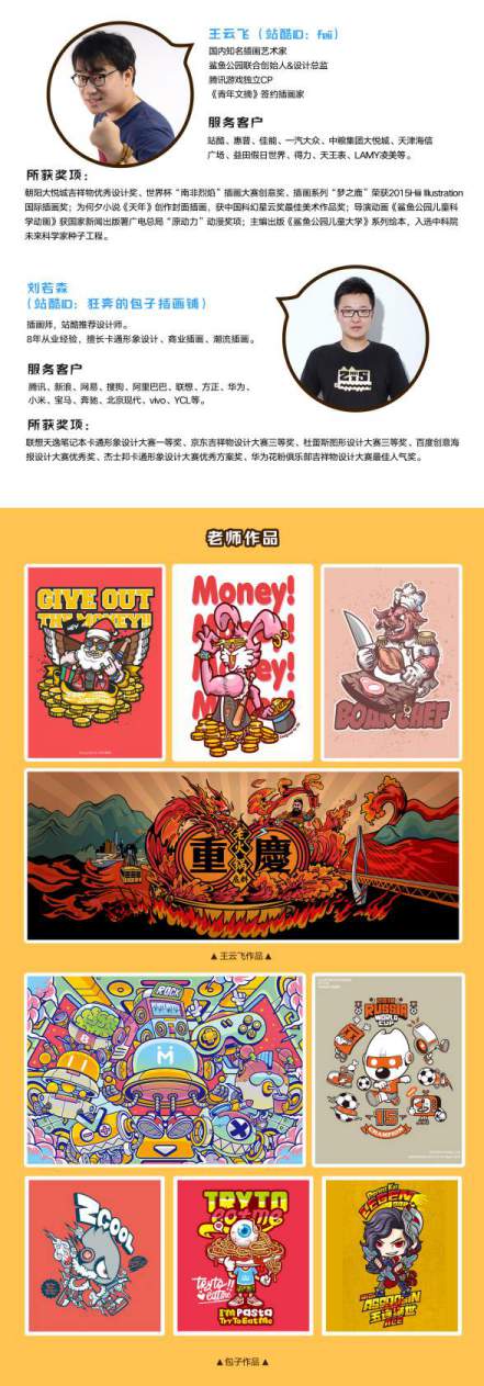 本课程是高高手联合站酷人气设计师王云飞&包子,针对零基础学员开发的A商业插画全能直播课,换句话说,这是一门“学起来简单、以作品商用为导向、可以掌握多种A插画风格”的直播课。