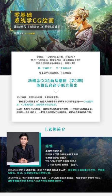 零基础学习CG绘画,可以很简单~新概念CG绘画基础班(第3期)陈惟&高高手联合推出15次直播,课程90%实操,全新海量案例。