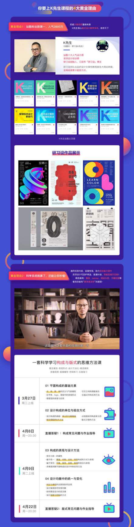 为此,站酷高高手特邀站酷粉丝数第一的研习设K先生及其团队,耗时一年精心打造2019王炸课程《K先生·平面构成与版式设计》:10小时录播视频+4小时直播答疑+30节课件PDF+4次作业练习+