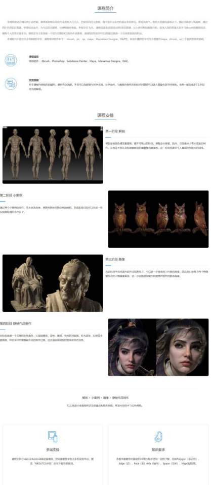 课程由黑老道(周岳老师)亲自授课,从人体结构和解剖开始,由浅入深的带领大家学习ZBrush的雕刻技法,强化对个人的美术基本功的训练。