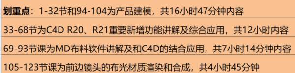69-93节课为MD布料软件讲解及和C4D的结合应用,共7小时14分钟内容