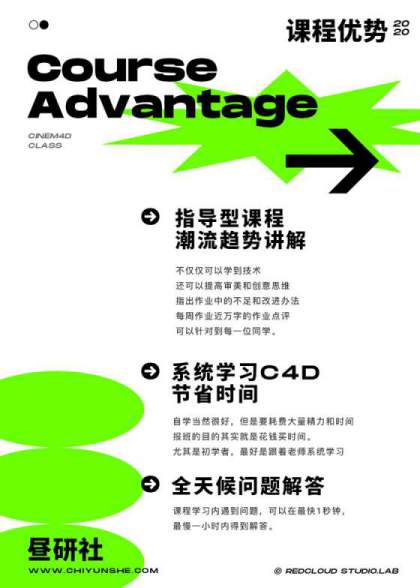 昼研社C4D课程为线上C4D课程。(偏3d设计实用类方向,并非CG职业3D类方向)