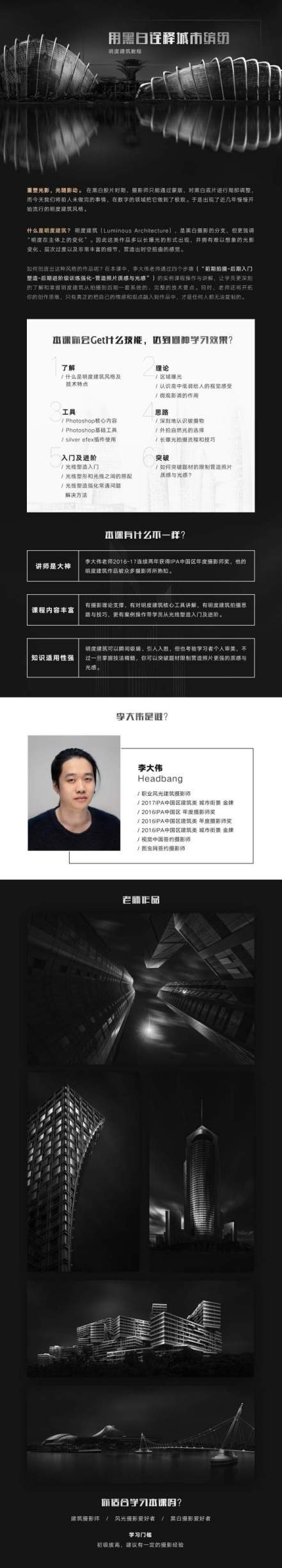 黑白摄影·明度建筑风格-高高手-李大伟【21节完结】价值399