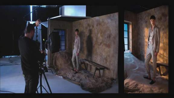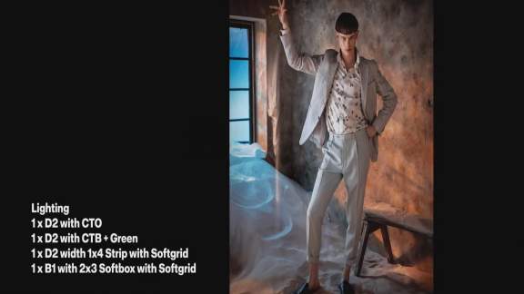 在大气的黎明拍摄中,大卫使用闪光灯和各种照明技术以令人兴奋和自然的方式增强背景。在最后的时尚场景中,大卫在一个拥有四灯设置的精美工作室中进行拍摄。