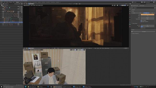 Blender控制灯光模拟不同室内办公室环境效果教程-中英字幕