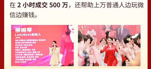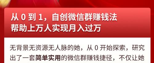 现代人最害怕的就是没钱,没钱的生活真不容易,因此对于我们来说,提高收入真的很重要!全球创业女性个人成长平台创始人,靠微信群2小时成交500万的营销专家柳婉琴,教你微信群赚钱方法,宝妈/白领/大学生都能学会,只要微信号就行,还送你价值699的微信群营销工具包,直接套用,不出家门就能快速赚大钱 !