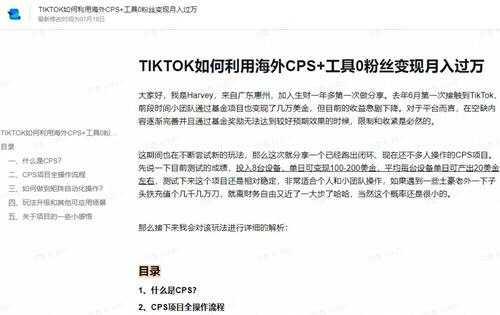 解析TIKTOK如何利用海外CPS+工具0粉丝轻松变现月入过万