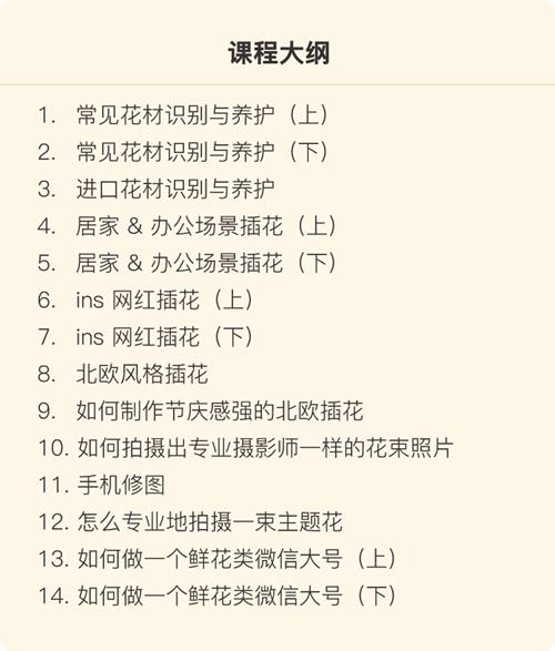 内容简介:插花课程,本次课程共15节课时,课程由浅入升,从基础到系统完整的讲解插花的课程,无论你是小白还是有一定基础,都可以通过学习本课程提高自己的插花能力。