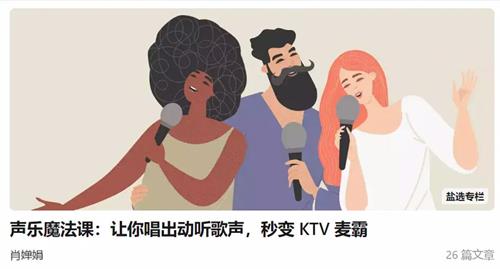 知乎上价值99元的《声乐魔法课:让你唱出动听歌声,秒变 KTV 麦霸》本课程由中央音乐学院特聘讲师肖婵娟主讲,为你打开「趣味动作唱歌法」的大门。25 节教学课,有效训练你的气息、发声、唱歌;6 节赠送课,实战 KTV 6 种曲风,随心切换惊艳四座;1 节彩蛋课,独家护嗓大法,活到老唱到老好听到老。