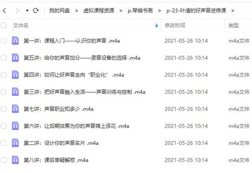 本课程由8节课组成,分别从用声习惯、职业化练习、录音设备与音效选择等几个模块进行讲解,单刀直入,帮您全面高效地掌握一切精粹有用的知识点,助你塑造好声音。