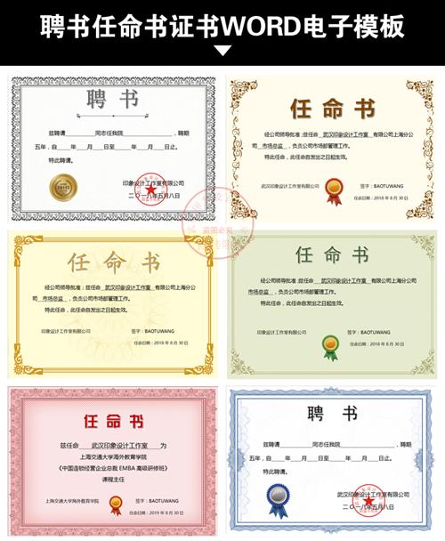 精选89套任命书/聘书word格式模板