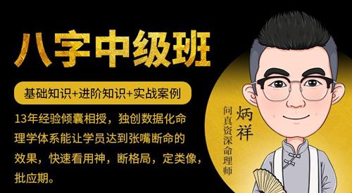 炳祥问真八字命理中级班,本课程为线上课,讲解中高级命理知识点,学习炳祥独创数据化命理学体系,掌握解八字的专业批命思路,能张嘴断命,快速看用神,断格局,定类像,批应期。